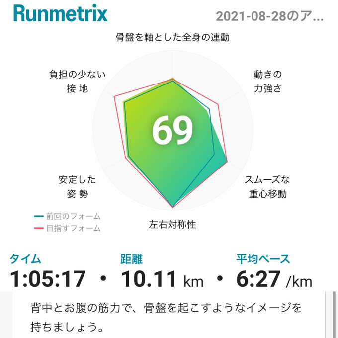 夕方のランでランメトリックス初め🏃 70点でした✨ もっとデータをためて傾向を調べたいです✏️ #ライブラン #liverun #バナソン #BANATHON #サスラン #ランメトリックス