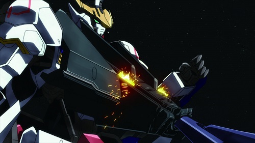 第5形態はガンダム・キマリスとの地球軌道上での戦闘を想定した重装備。モンターク商会から提供されたリアクティブアーマーを胸部に増設しています。