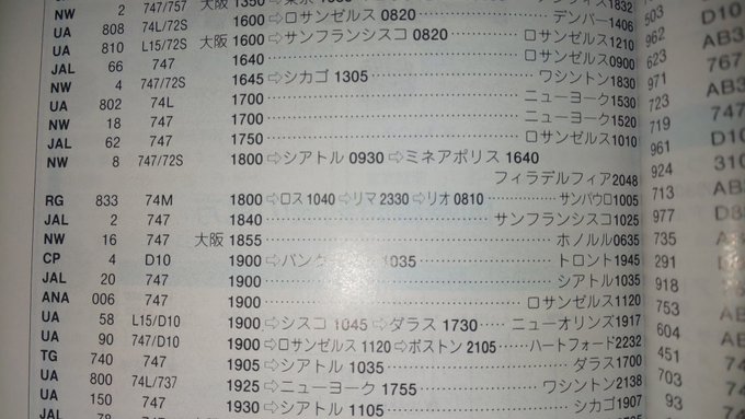 成田―ロサンゼルス―リマ―リオデジャネイロ―サンパウロ線(1987年)