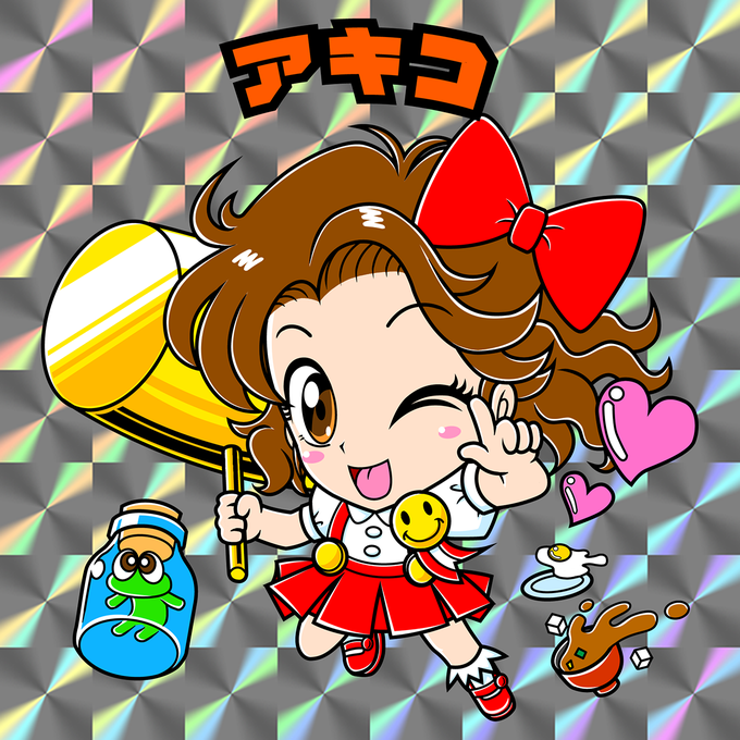 ビックリマンシール風サイキック5のアキコ描いた。#レトロゲーム #ビックリマン風 #ビックリマンシール #サイキック5 #レトロゲームギャル #アキコ