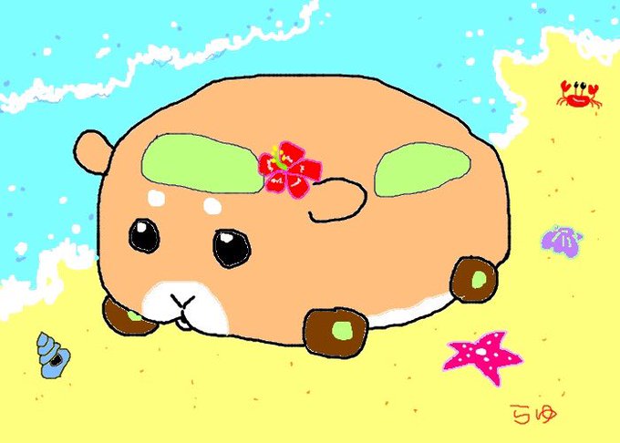 がんばってモル転しました!😆ロボロフスキーハムスターが大好きなので(過去に4匹お世話しました)同じ柄にしてみました✨とても臆病なとこもそっくりですw 夏生まれなのに夏が苦手で泳ぎも下手なのでモルカーのビチパには砂浜をお散歩で参加です✨🐚✨🏖✨🌞✨ #モルカーファンアート #モル転