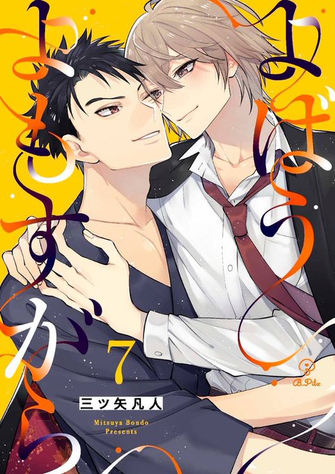 三ツ矢凡人先生(@mituuuuya)『よばうよもすがら』扉デザインを引き続き担当させて頂きました。これまではタイトルに合わせて夜のイメージだったのですが、7話からはガラッと雰囲気の違うハッピーな感じのイラスト&色合いです。