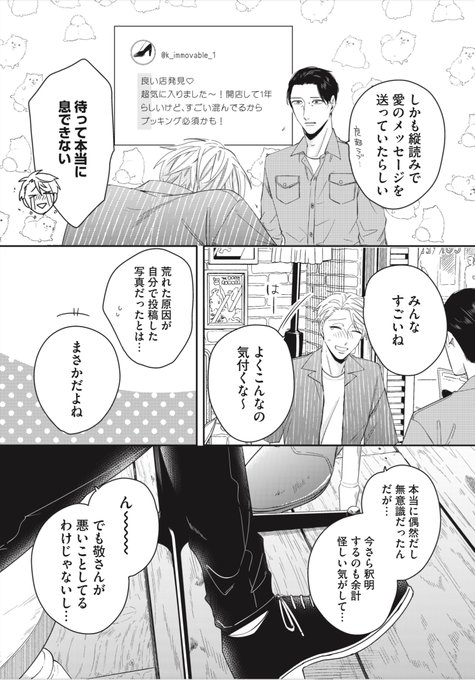 ニアBLなのかな?と思って読み進めてみたら、普通に良いお話……そして飯テロだ……主役の男性が、裏垢投稿から知り合った有名配信者の男子高校生と行く飲食店が、映えだったり可愛い感じだったりして、いつの間にか(続)