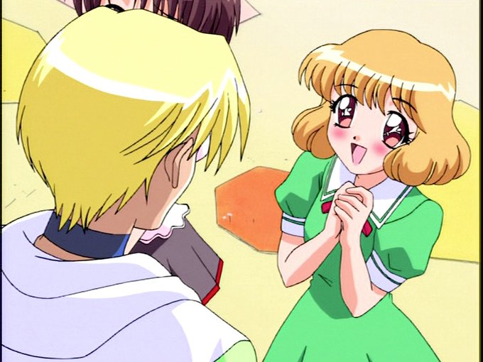 日々の楽しみの東京ミュウミュウのBD観賞。今回は第23話で白金と赤坂さんを好きになったいちごの親友のもえとみわ、青山君の薦めもあって恋のキューピッドを買って出るいちごですが・・・。黄色い髪が印象的な柳田もえさんを演じるのは、後のキュアパインの中川亜紀子さんだったりw #東京ミュウミュウ
