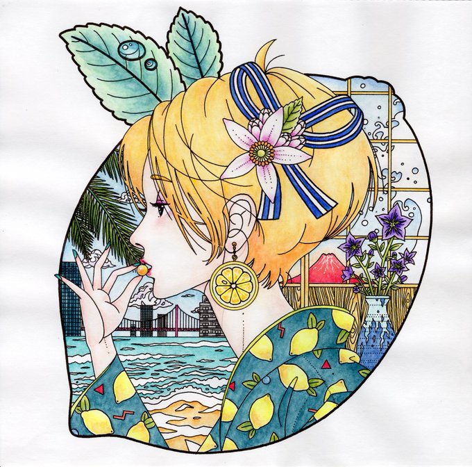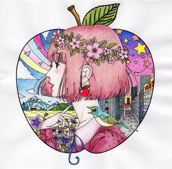 #中村佑介ぬりえ で頂いた似顔絵、アイコン用にさっそく塗らせていただきました!私がぬりえに描き足したものがここにも同じように描かれているのがとても嬉しい✨そしてホンモノよりも美人さんです…😳