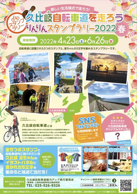 #久比岐自転車道 で開催中のスタンプラリーで、全5つのスタンプと凛ちゃんの4文字を集めて抽選応募すると、引き換えに《#完走証》がもらえるよ☺️✨