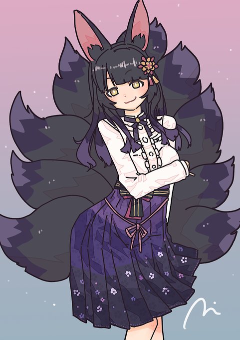 しっぽ9本描くのむずくない? まったのーって言ってるときの九乃依 〜苦手なウィンクを添えて〜 #九乃絵巻 #九乃依茶々