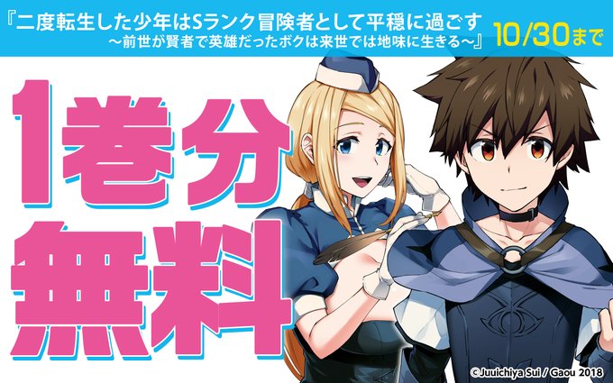 【アプリ】『#二度転生した少年はSランク冒険者として平穏に過ごす ~前世が賢者で英雄だったボクは来世では地味に生きる~』1巻無料キャンペーン☆