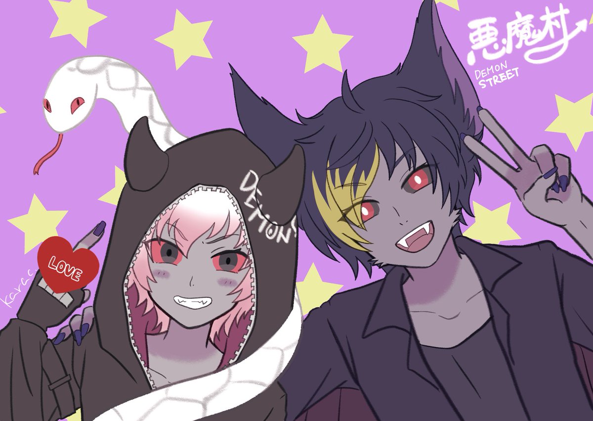 万聖街風マングーとバットちゃん(似てない)(似てないね)(村はvillageだけど、2人はデーモンストリートに住んでるので敢えてストリートにしました) #SB69 #ショバフェス