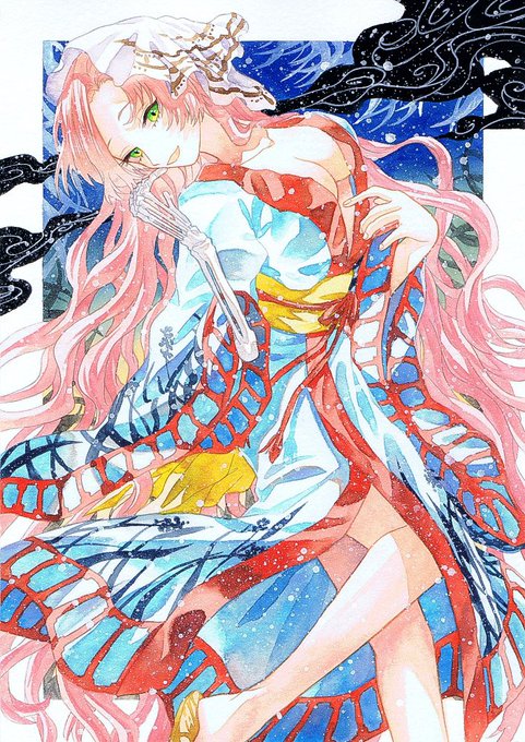 3、7月に描いたイラスト達で、以前描いた妖怪シリーズの女の子達をもう一度描いてみました…!