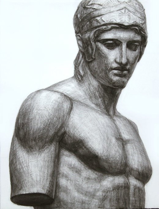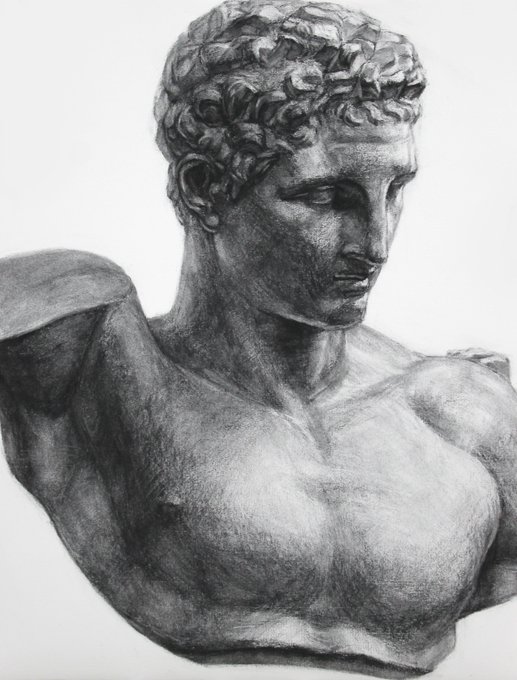 怒涛の1時間石膏デッサン。ノーデスケル。ノー測り棒で感覚的に一気に進めました。調子の乗せ方はいつもよりワイルドな感じで楽しみつつ 笑。