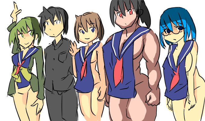 すると女子は #前掛けセーラー服 が真ん中に寄ってしまい、隠していた両胸とも晒してしまう。