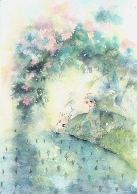 普段は透明水彩でファンタジーな1枚絵を描いています。竜と少年が多めです。