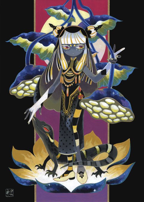 創作絵描き。油性色鉛筆・不透明水彩などを組み合わせ制作。ほの暗い夜に包まるような夢心地と、魔女を見る額縁の向こう側に想いを馳せる魔法を描いています。