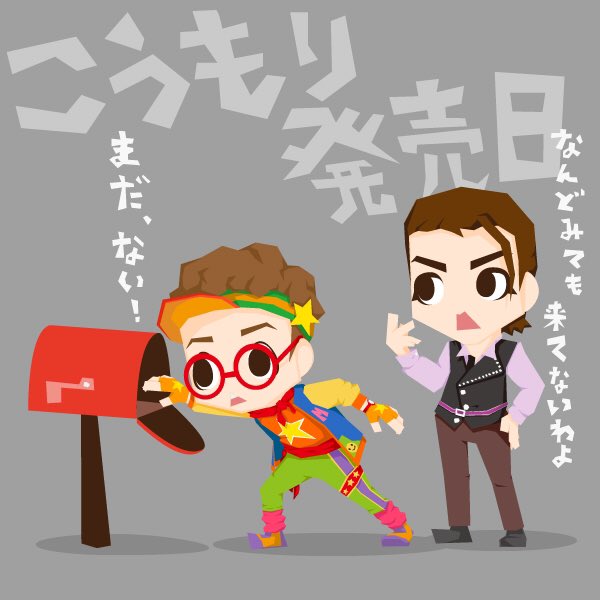 ミッチェル:今日はこうもり/エンタテ発売日だよ! あれー、まだ来てないよ! カイル:ちょっとアンタ!何度ポスト見に行っても無いものは無いわよ。 って、聞いてんの!? #北翔海莉 #七海ひろき #ヅカ絵