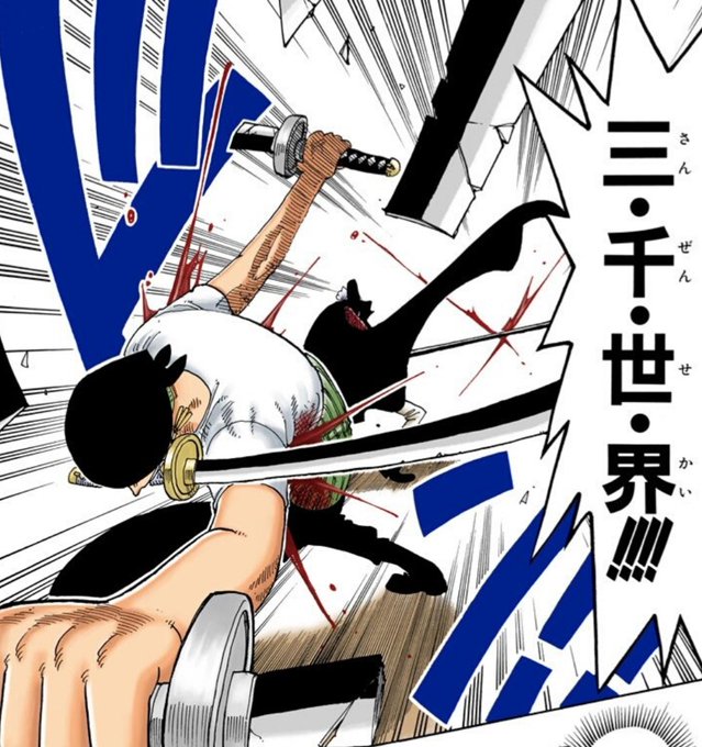 コウ三郎から貰った2本の刀(以下画像、柄の紋様と鍔の形が一致)、11年間しっかり実働出来たのは流石名工の打った刀。本人曰くナマクラ刀との事だが「押して押す事」を〝豪剣〟の極意としていたゾロの馬鹿力に耐え、世界最強の剣士に折られるまで刀剣としての責務を全うしたのは見事だ。