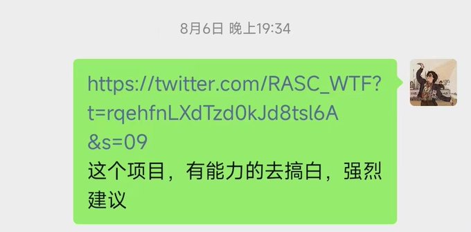 #RASC_WTF 又一个超前布局的项目,1白free2个,目前地板0.05,买单强劲,在1k粉丝的时候提醒群友拿白,之后的每天一天最少提醒两次,群里粗略估计白单350+,有群友搞了10多个的,另外还撒钱抽了40个,舒服!!