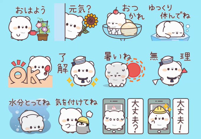 新作【動く♪シロクマくんの夏スタンプ】の一部をご紹介💕