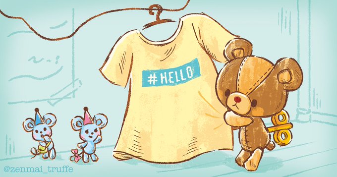 おとなりさんの洗濯物が降ってきたんだ。 僕もこんな大きな服着てみたいな♪ #ぜんまいじかけのトリュフ #Tシャツの日