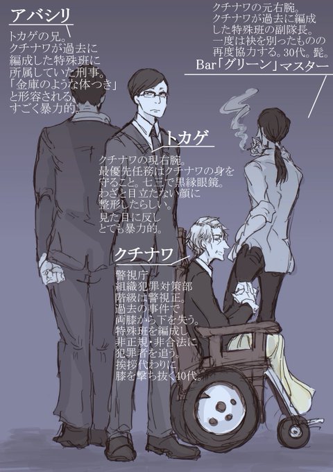 昨日から急に大騒ぎしだした大沢在昌の「カルテット」なんですけど大騒ぎしてるだけなのもアレなので絵にした いや主人公は少年少女なんですけどこのおっさんたちはバックアップなんですけど とにかくごりごりの男組織の何かこう…一種独特な熱気というか…ハードボイルド畑の人だから…
