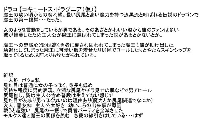 モルクスちゃん関連のキャラで魔王様の友人(悪友)の男の娘ドラコちゃん!