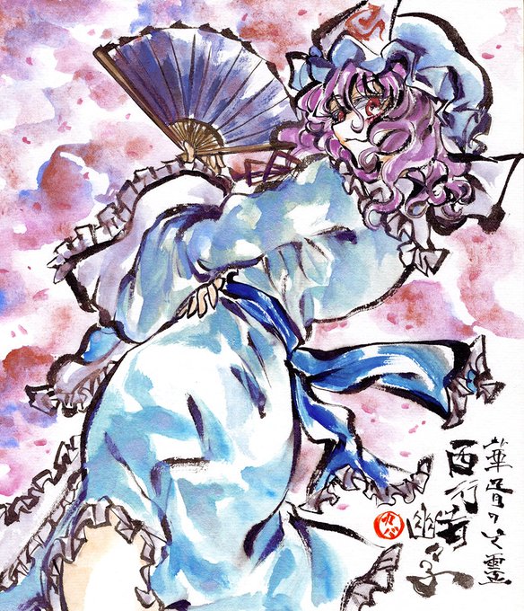 きたこさん(@kiitiiaiikiioii)に復刻墨彩画で宇佐美蓮子、西行寺幽々子を制作していただきました!
