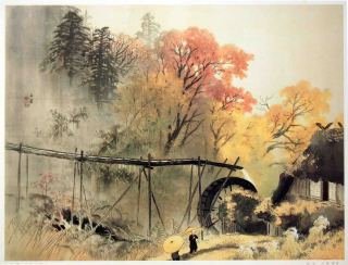 川合玉堂です。私見ですが、大正期以降は日本画の方が天才的な画家が多いと思います。四季の変化の有る日本の自然を自由に詩情豊かに描く画家が多く出ました。この人は東京美術学校の教授もやった人なので、大正期以降の日本画は玉堂の影響が大きいのでしょう。