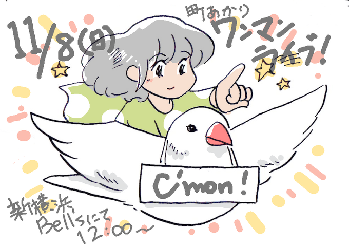 あと2日!11/8(日)新横浜ベルズにてワンマンライブ〜🙋今回はバンドver.!手作りの新衣装で登場予定🌼手描きTシャツ販売コーナーあり、バンドでの初披露曲も?!お楽しみに🌟詳細は→【https://t.co/6KuGAM3kCw】