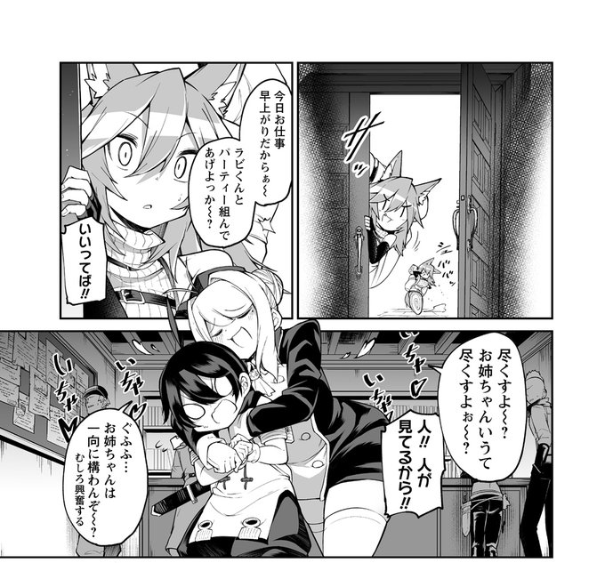 大変お待たせしました!「搾り取らないで、女商人さん!!」 第5話本日更新です!ギルドで受付嬢のお姉さんとイチャつくラビくんを偶然目撃してしまった商人さんは…?