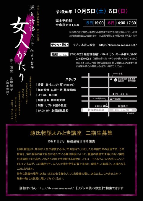 新宿御苑前駅徒歩5分弱の鶏福(居酒屋さん)で源氏物語公演とは