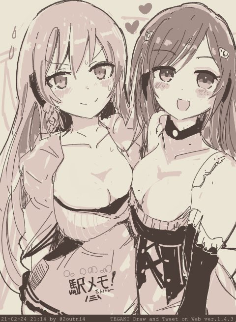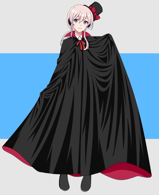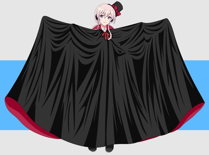 過去作いじりで新居浜姉妹の普段着のマントも黒赤ベースに変えてみたらオシャレに、二人で仲良くバサバサと(§╹◡╹)(§ ◜◡◝ ) #駅メモファンアート #新居浜いずな #新居浜ありす