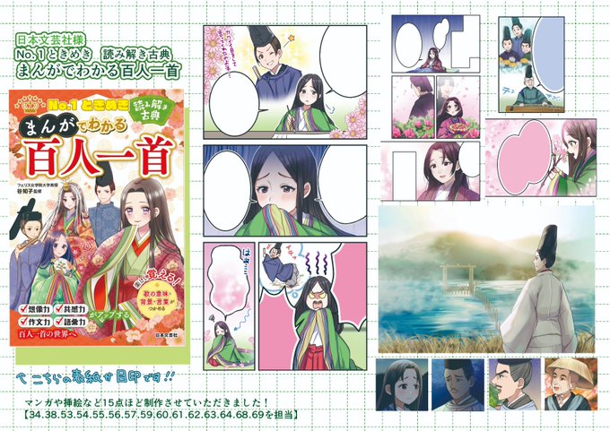 🌼お仕事告知🌼日本文芸社様より発売中『No.1ときめき 読み解き古典 まんがでわかる百人一首』にて本文のマンガや挿絵を描かせていただきました!マンガでわかりやすく、歌の解説はしっかり詳細で百人一首を楽しく学べる一冊だと思います!よろしくお願いします~~!!☺️🙏✨