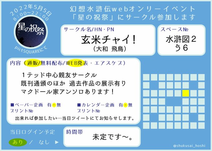 5月5日の星の祝祭、水滸図Ⅱのか5にて参加致します!