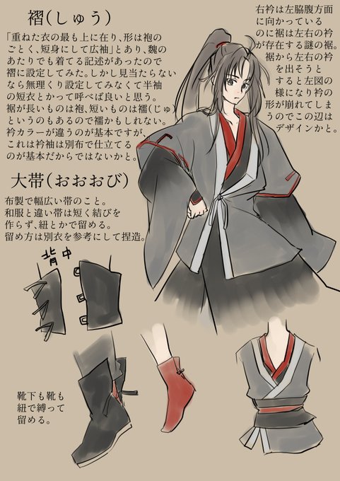 「日本服飾史」のサイトに見える天武・持統朝文官朝服(https://t.co/XfnOcbvGPp)などを参考にして描いてました。