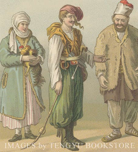 19世紀フランスの画家・服飾研究家のアルベール・シャルル・オーギュスト・ラシネ(1825-1893)による代表作「服飾史/Le Costume Historique」より、トルコの衣装を描いた一枚です。