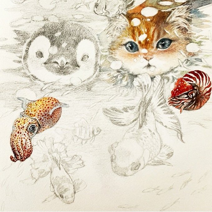 #猫 #イラスト #ペンギン #コミティア139 #水彩画