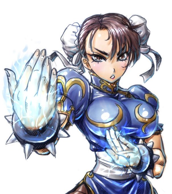 【お絵かき】ストリートファイターVより春麗。久しく格ゲーそのものを遊んでない俺ですが、最近のチュンさんは錬気功とやらでオーラが纏えるようになったんですねー。ターちゃんで梁師範好きだったのでたまらんですぜ。 #格ゲーキャラ描こうぜ