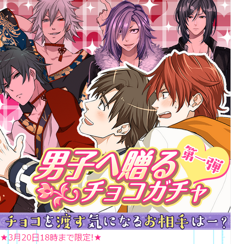 男子へ贈るチョコガチャ第一弾がリリースしました。第一弾は景、夕、死タイ、ペット帝国中心のカードが出現。それぞれ、男子の誰かにチョコを渡すストーリーとなっておりますので、必見です! #ふだんしBL