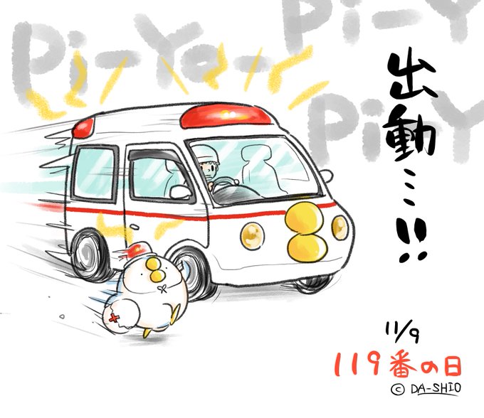 いっそげー🚑 ε=ε=ε=ε=ε=ε=┌( ・8・ )┘ #119番の日 #毎日あのとり