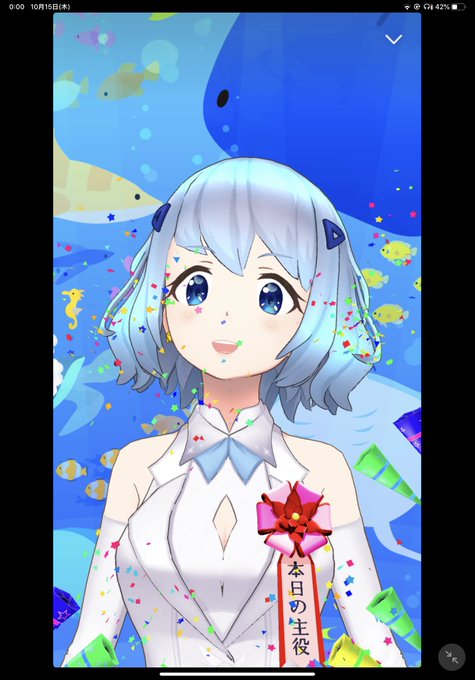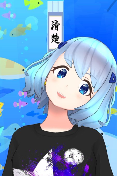 海からリスナー、ファンに微笑みかけるくらげの #Vtuber 満月くららさん(@mituki_kurara )を描かせていただきました👀✨