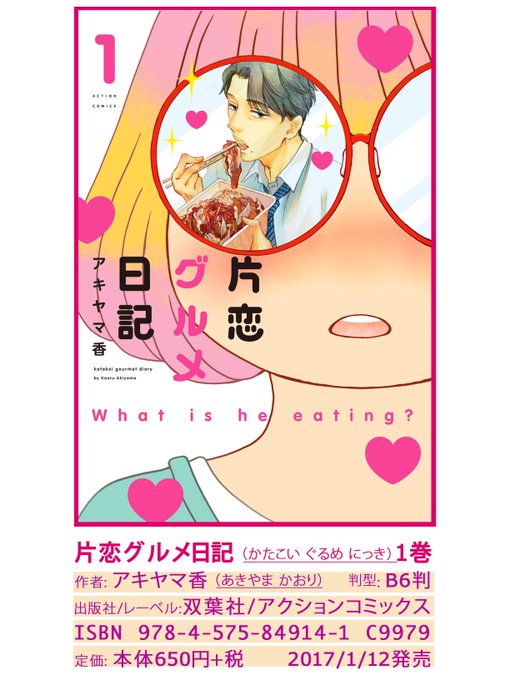 【片恋グルメ日記①】はいかがですか?妄想&グルメのラブコメコラボです。本屋で店員さんにお問い合わせしやすい画像作ってみました!