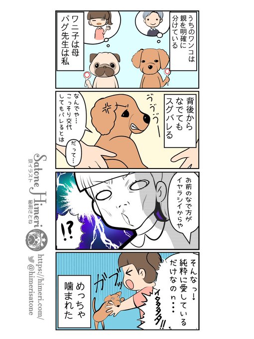 犬4コマ描いてみる。しつけ出来て懐いてもいたんだがめっちゃ噛む。でも可愛い。うちに来てくれてありがとう。