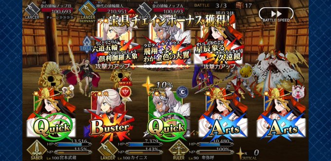 前二人がB宝具でオーバーチャージがダメアップだからなかなか楽しい。なんだかんだでB7枚の脳筋パーティなのがw