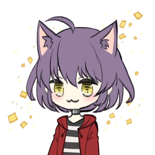 紫髪で黄色い目を持ってる猫