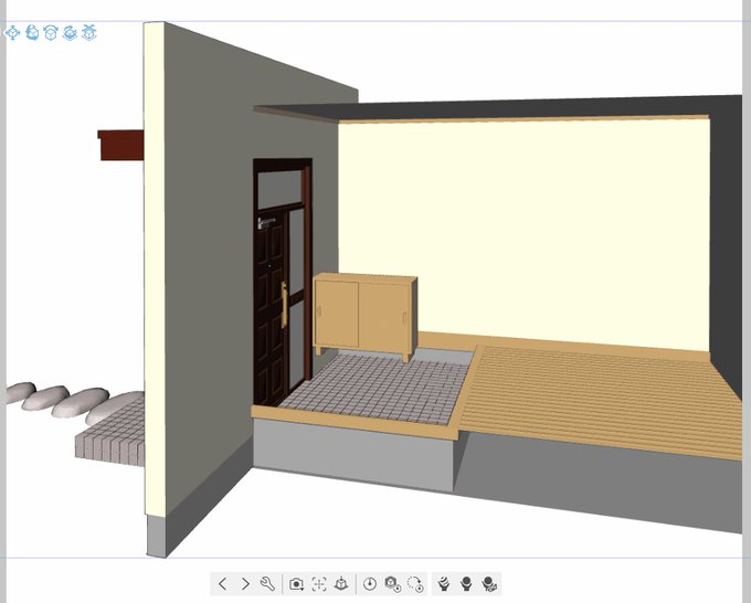 玄関ドア周りを少し簡単に作るだけのつもりだったのに、どんどん大きくなっていってる。変更して作りかけなので下駄箱が宙に浮いてる。いつ完成するのかわからない。 #3D素材