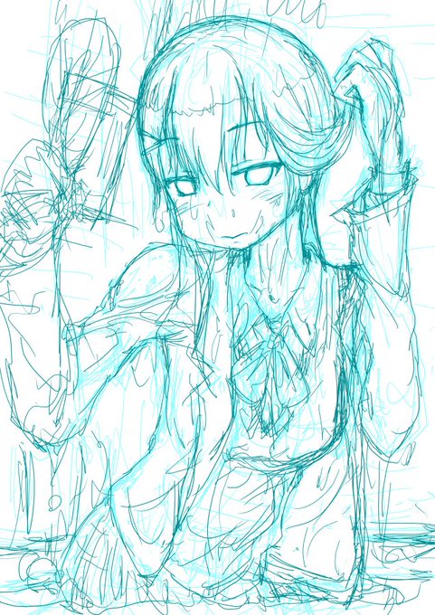 お題のひおりん、しぶりん着衣入浴ラフ~ 二人とも浸したかったけどできなかった