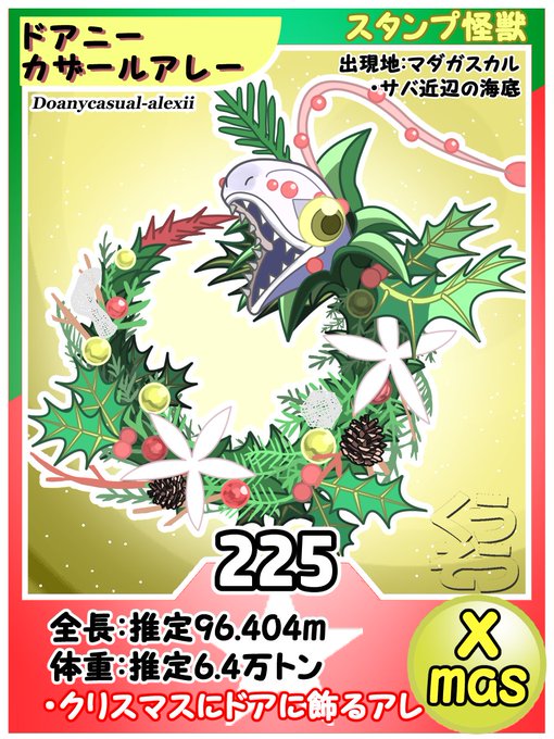 知らない怪獣 ドアニーカザールアレー/普段はしっぽをくわえて丸くなり海底に沈んでいる。その姿はクリスマスリーフの様だ。しかし 飾りのように見えるものはヒレやウロコ、それか 巨大なカイロウドウケツ(海綿の仲間)だったりする。魚が安心して近づいてきたところを捕食する。#クリスマス #くうそう