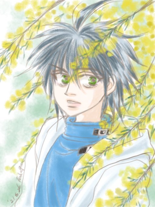 以前ヤギヨリさんとのやり取りの中で、「ミモザの花咲く頃に出会った」という素敵なイメージを伺って、いつか描いてみたいなあ…と思ってたのでした。