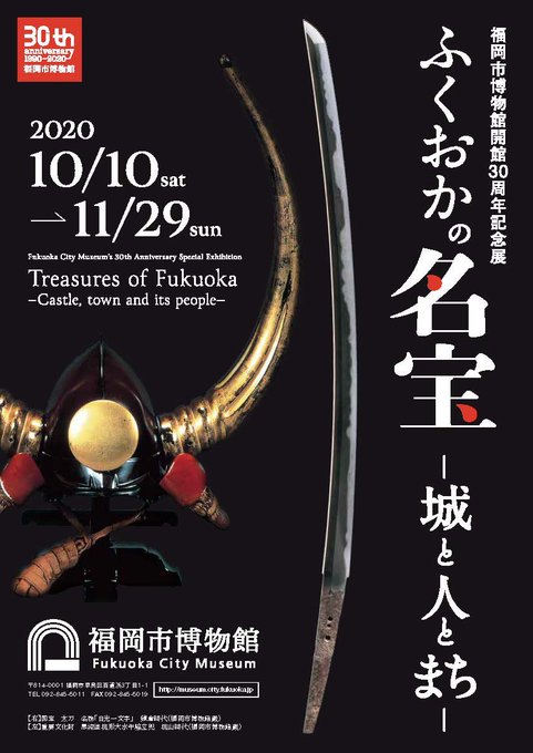 お待たせしました!開館30周年記念展「ふくおかの名宝—城と人とまち—」のホームページを公開しました!当特別展は、10月10日~11月29日開催です。お見逃しなく! #おまたせ圧切長谷部 #福岡市博物館 #日光一文字 https://t.co/ESlf2aO3tr
