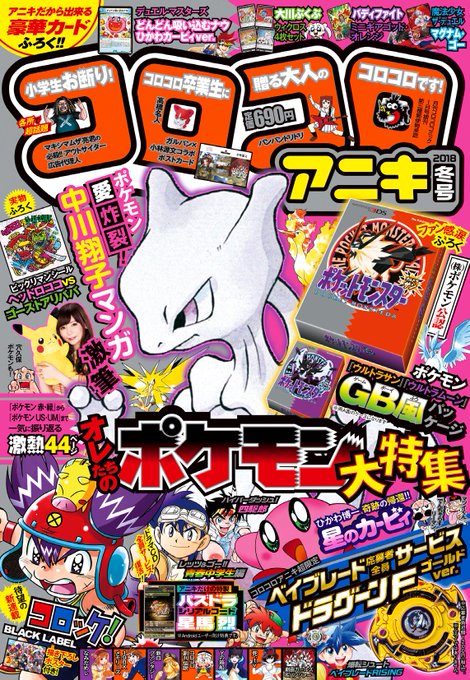 コロコロアニキ冬号は特大44ページで「ポケモン」を赤・緑からウルトラサン・ウルトラムーンまでを特集!付録のポケモン公認「ウルトラサン・ウルトラムーン」ゲームボーイ風パッケージに中川翔子さんやギエピーの穴久保幸作先生の漫画、人気漫画家のトリビュートなど豪華!詳しくは画像をチェック!